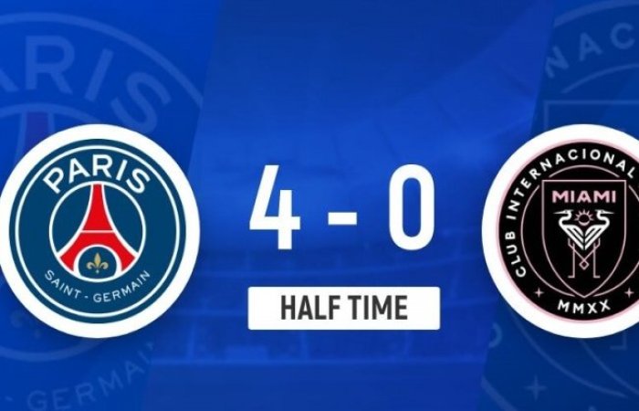 上半場比賽結(jié)束,巴黎圣日耳曼暫時4-0領(lǐng)先邁阿密國際。