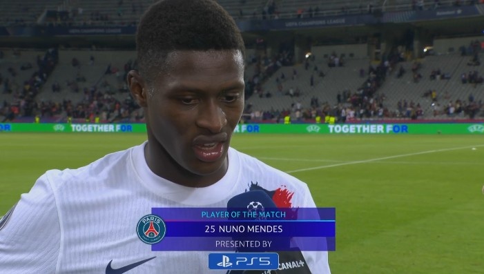 10月2日訊 歐冠聯(lián)賽階段第二輪,巴黎客場(chǎng)2-1逆轉(zhuǎn)絕殺巴薩。賽后,門德斯接受采訪。