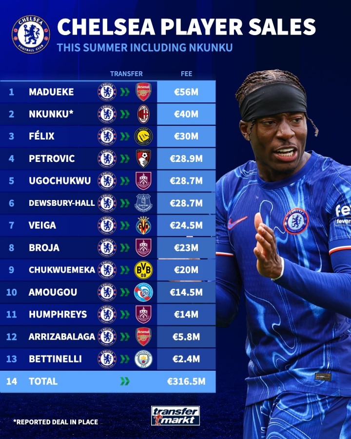 賣人的神切爾西超4000萬賣恩昆庫,今夏賣13人收入超3.16億歐
