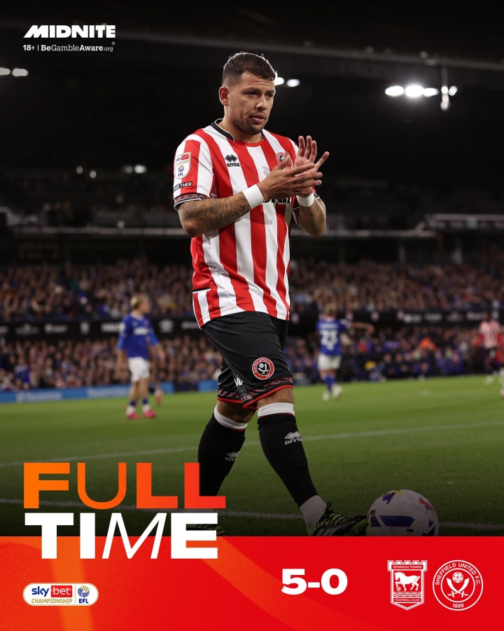 09月13日訊 英冠第五輪,謝菲爾德聯(lián)0-5慘敗伊普斯維奇。
