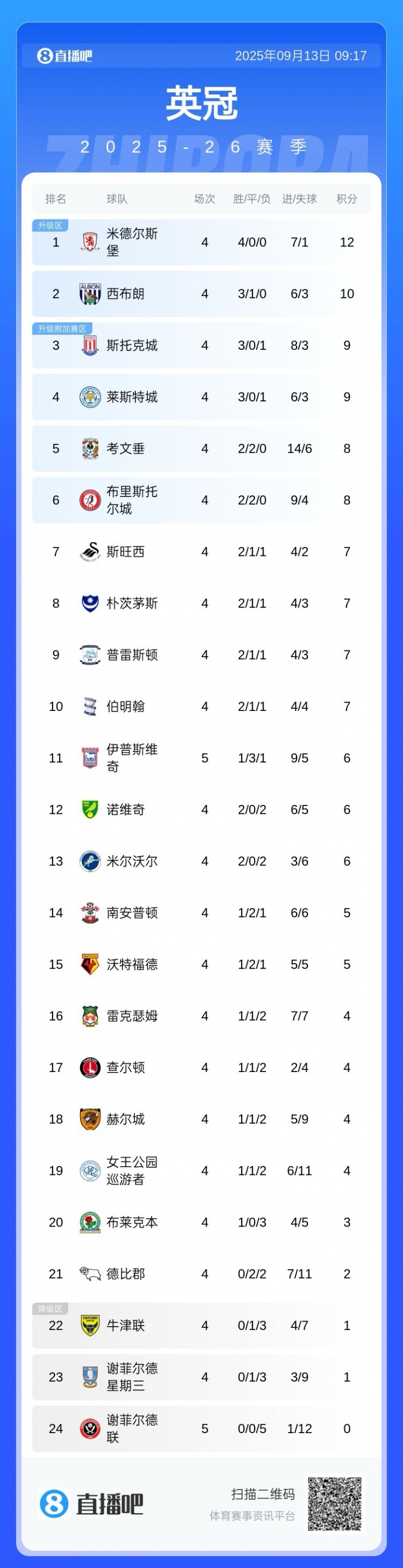 判若兩隊!4個月前謝菲聯(lián)爭英超名額,如今英冠倒一僅進1球5連敗