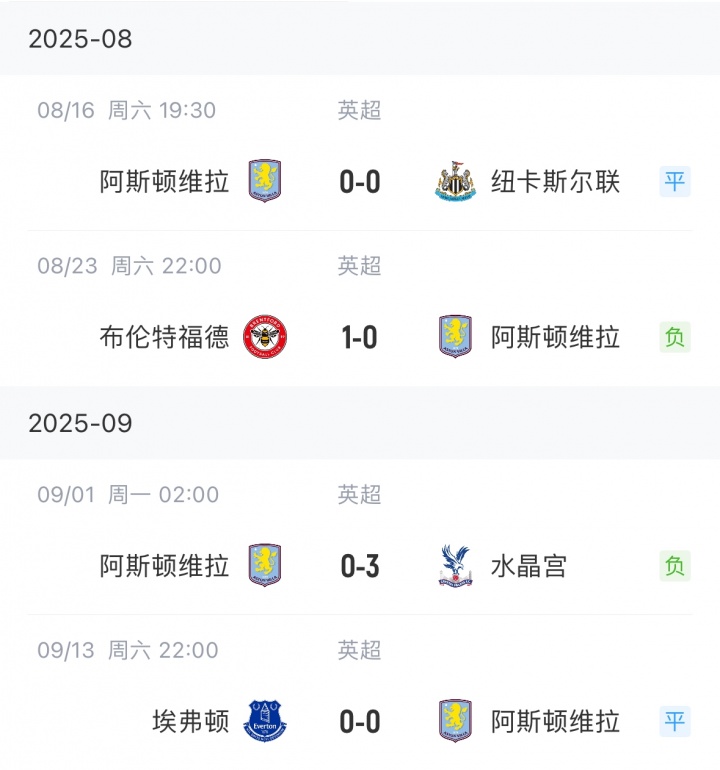 進(jìn)攻啞火!維拉開(kāi)賽2平2負(fù)陷降級(jí)區(qū),全隊(duì)身價(jià)英超第九卻1球未進(jìn)