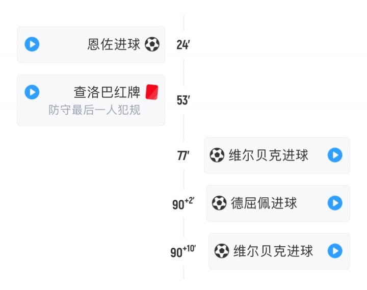 切爾西1-3布萊頓,第92分鐘德屈佩進(jìn)球,第100分鐘維爾貝克進(jìn)球↓