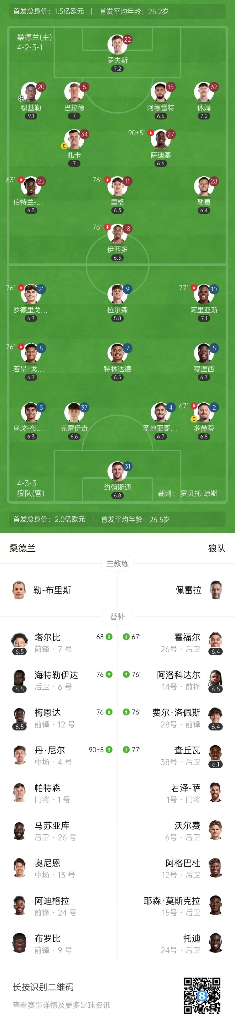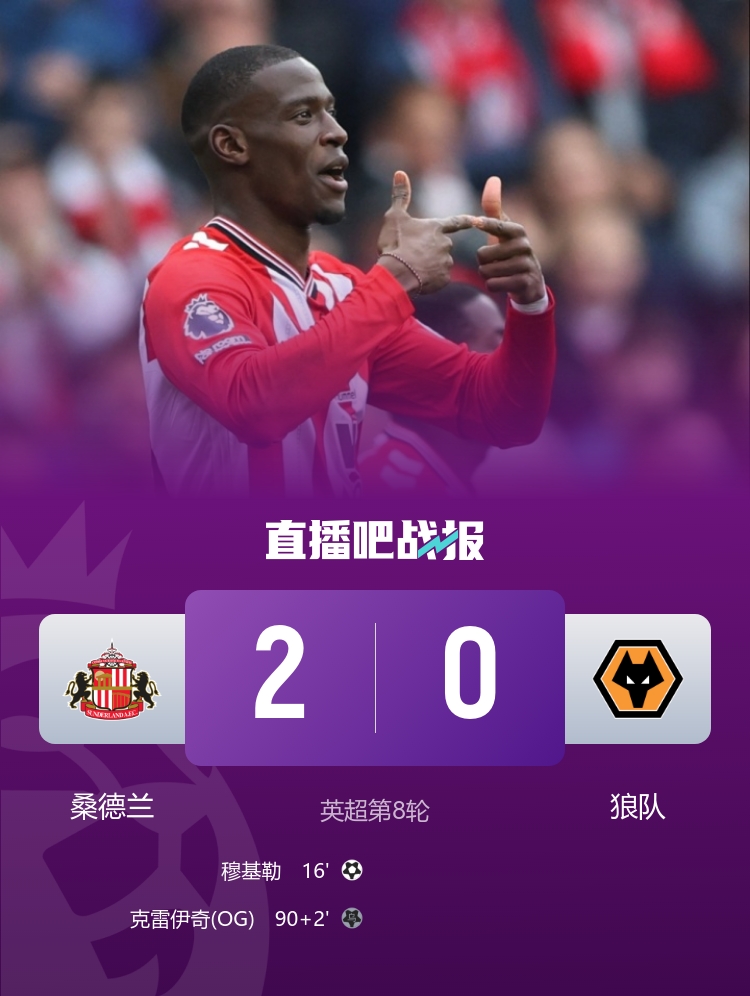 全場比賽結(jié)束,桑德蘭2-0狼隊。