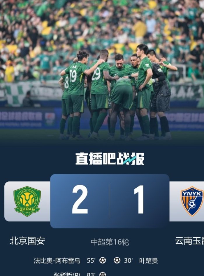 4連勝&16輪不敗領(lǐng)跑!國安2-1逆轉(zhuǎn)云南玉昆 張玉寧替補(bǔ)助攻+造點