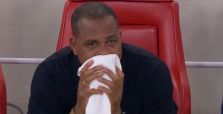 隨后,他就一直坐在教練席上不斷地用毛巾抹臉,眼眶泛紅,場(chǎng)上隊(duì)員和工作人員與馬寧發(fā)生沖突時(shí)他也只是看著。
