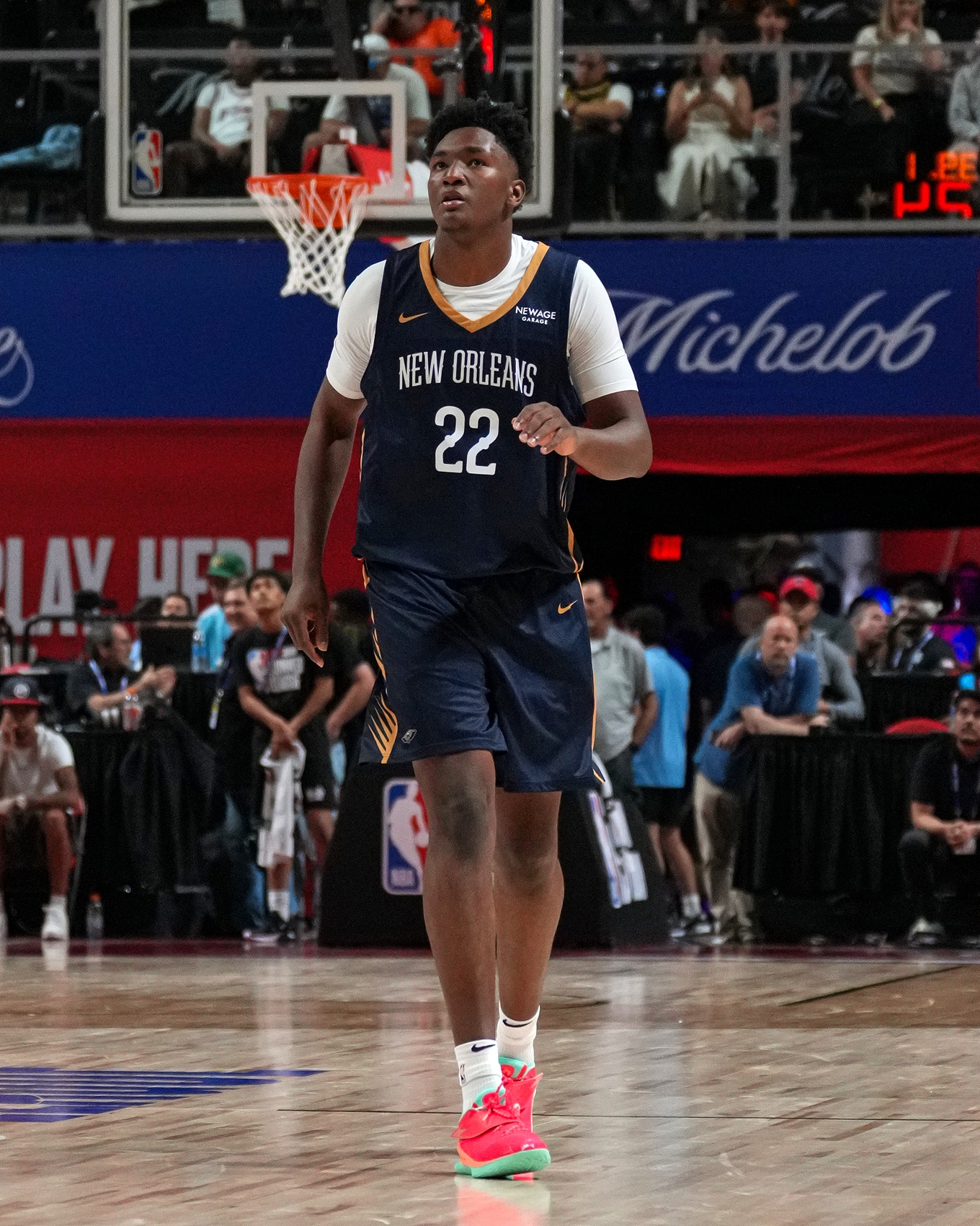 在此前季前賽對陣森林狼的比賽中遭遇左腿筋拉傷,將缺陣至少一個月。