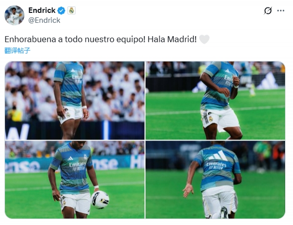 國家德比賽后,恩德里克寫道,“祝賀我們?nèi)?duì)!皇馬加油!”措辭禮貌,卻透著冰冷疏離,仿佛一個(gè)置身事外的旁觀者。