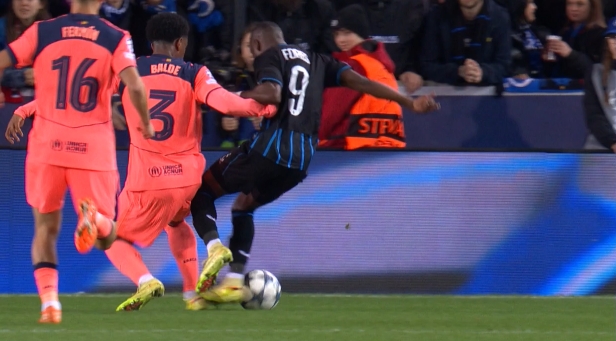 11月06日訊 歐冠第4輪布魯日vs巴薩,第72分鐘,博爾赫斯拿球殺入禁區(qū),在巴爾德防守下倒地,主裁判泰特第一時(shí)間判罰點(diǎn)球,但隨后親自看過(guò)VAR后取消了點(diǎn)球的判罰!