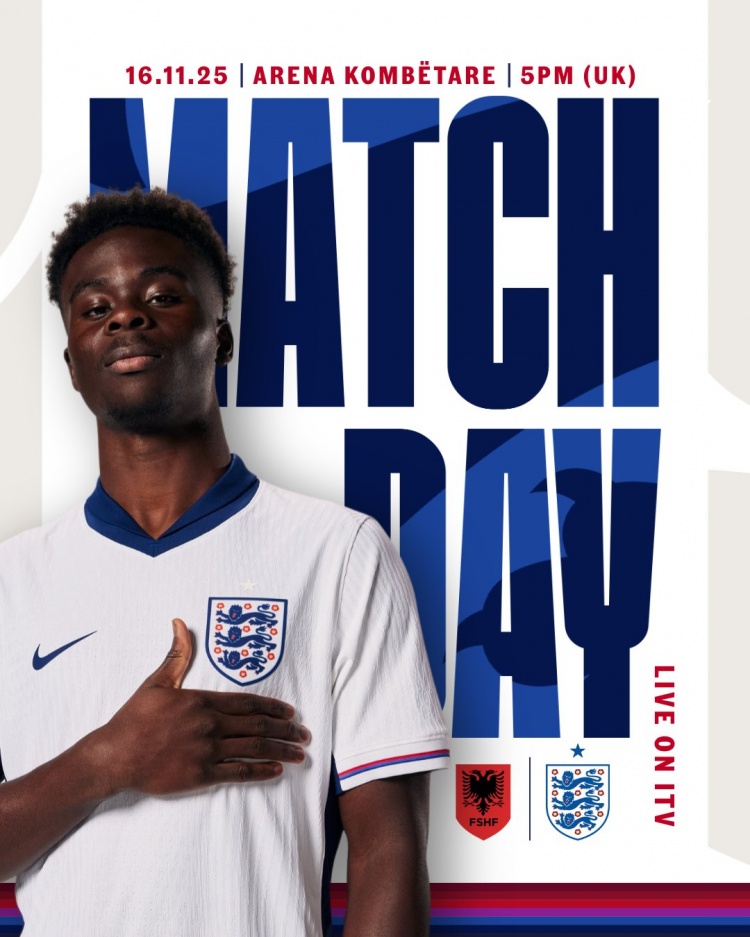 收官戰(zhàn)!英格蘭發(fā)布對陣阿爾巴尼亞海報:薩卡單人出鏡