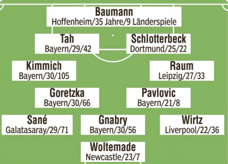 圖片報(bào)預(yù)測(cè)德國(guó)隊(duì)首發(fā):基米希、維爾茨、薩內(nèi)、沃爾特馬德在列